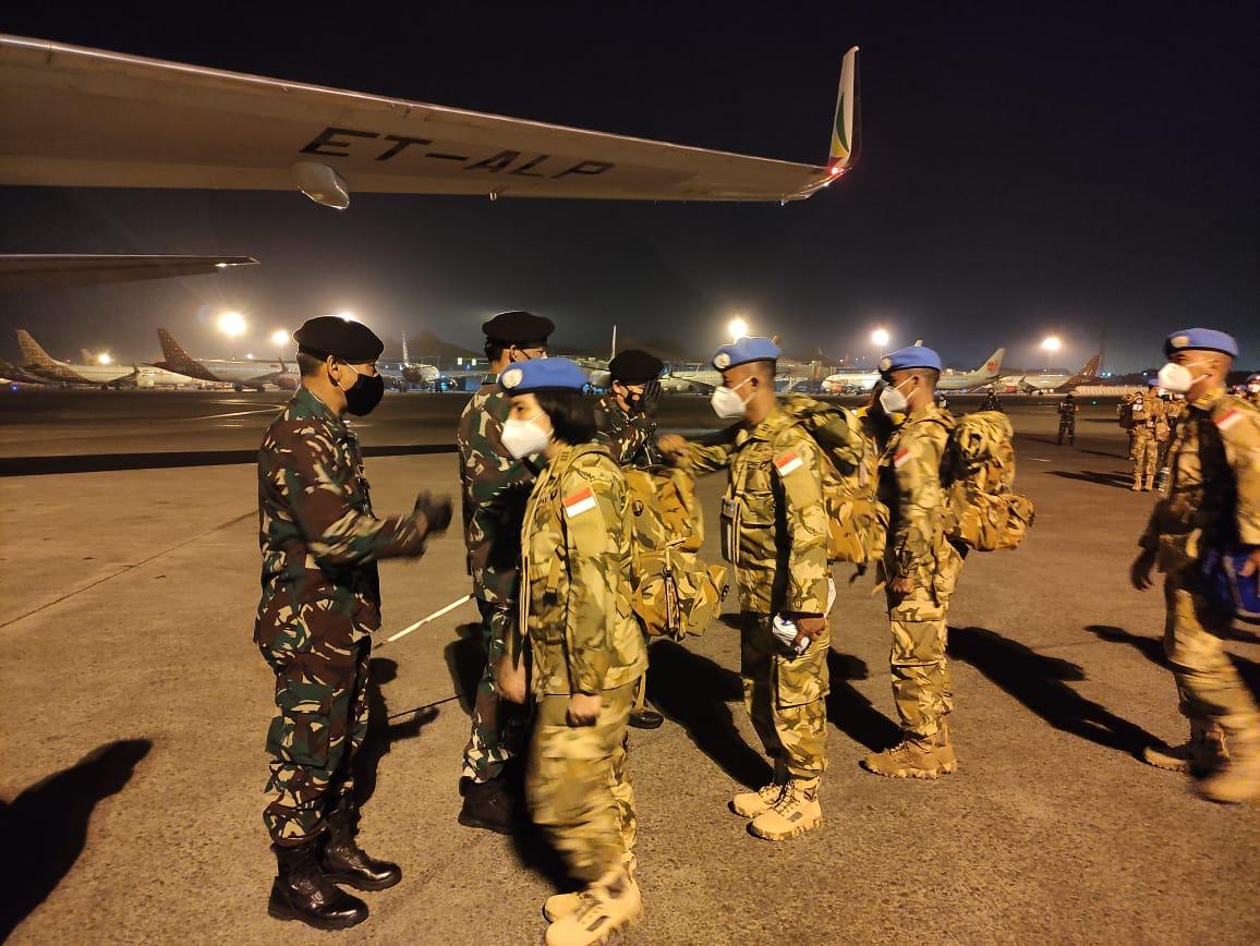 Pemberangkatan dipimpin oleh Komandan Pusat Misi Pemeliharaan Perdamaian (PMPP) TNI Mayjen TNI Victor H. Simatupang M.Bus. serta dihadiri oleh Asops panglima TNI Mayjen TNI Tiopan Aritonang, S.I.P. {}