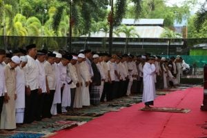 MERDEKABICARA.COM | BANDA ACEH – Panglima Kodam Iskandar Muda (Pangdam IM) Mayjen TNI Teguh Arief Indratmoko sholat Idul Adha 1440/H 2019 M bersama prajurit dan PNS Kodam IM serta masyarakat bertempat di lapangan Indor Jasdam IM, Neusu Jaya, Baiturrahman, Banda Aceh. Minggu (11/8/19).