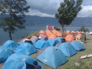 Rombongan mendirikan Camp dipinggir danau sembari membuat acara donor darah dan berbagai macam kegiatan perlombaan lainnya.