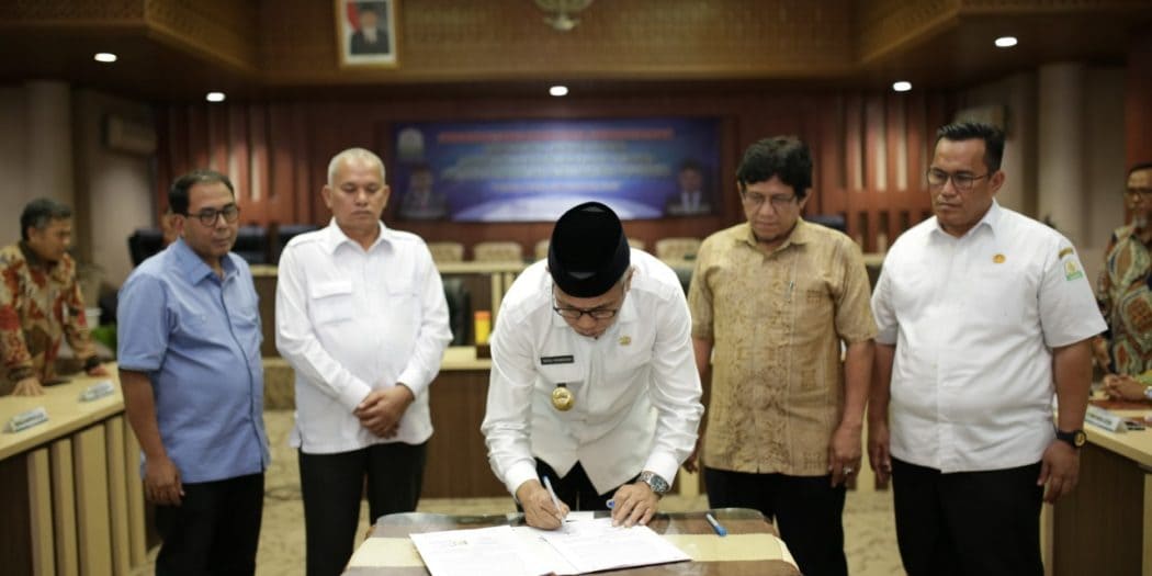 MERDEKABICARA.COM | BANDA ACEH – Sebanyak 15 perusahaan yang bertanggung jawab di Aceh menerima nota kesepahaman dengan pemerintah Aceh terkait tanggung jawab sosial lingkungan perusahaan, di Gedung Serbaguna Setda Aceh, Rabu 23/10.