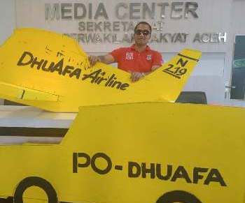 Pesawat’ dan ‘mobil’ PO Dhuafa ini diantar dengan menggunakan becak. Kedua ‘alat transportasi’ itu sempat mengelilingi tiang bendera di halaman gedung, sebelum mendarat atau parkir di Media Center DPRA. Dhuafa Airline’ dan mobil bermerek ‘PO-Dhuafa’ yang terbuat dari styrofoam dan dicat warna kuning itu, diserahkan kepada anggota DPRA, Bardan Sahidi.