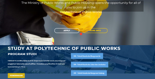 Politeknik PU yang berlokasi yang berlokasi di Jl. Prof. Soedarto, SH – Tembalang, Semarang, Jawa Tengah, tahun ini masih menawarkan tiga program studi, yakni D-III Teknologi Konstruksi Bangunan Air, D-III Teknologi Konstruksi Bangunan gedung, dan D-III Teknologi Jalan dan Jembatan, dengan jumlah penerimaan mahasiswa sebanyak 150 orang atau 50 orang untuk tiap-tiap program studi.