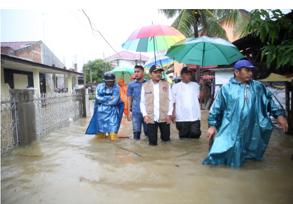 “Air meluap ke perumahan dari sungai karena hujan deras, ketinggian air mencapai 30 cm hingga 1 meter,” ujar Mawardi Ali didampingi Dandim 0101/BS Kolonel Inf. Hasandi Lubis dan Kasatlak BPBD Aceh Besar Farhan AP.