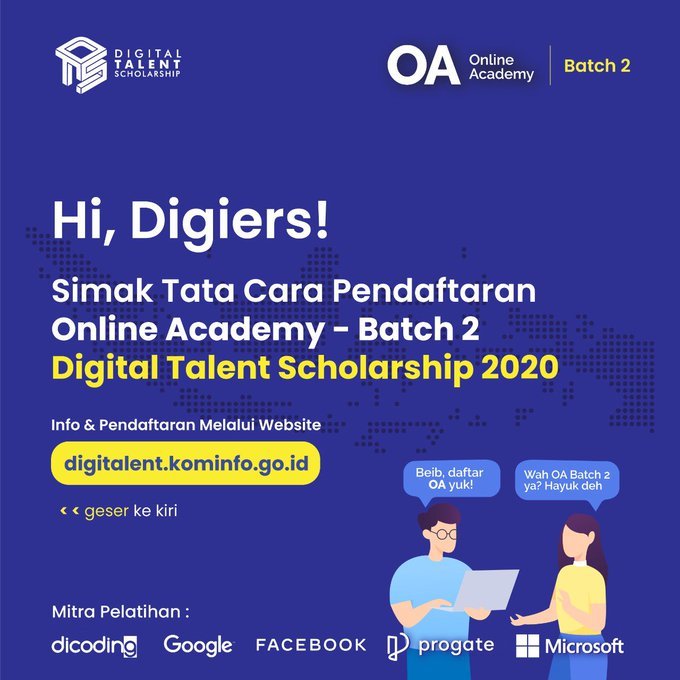 MERDEKABICARA.COM | JAKARTA – Kementerian Komunikasi dan Informatika membuka peluang bagi 15.200 peserta untuk mendapatkan beasiswa pelatihan Program Digital Talent Scholarship (DTS) 2020 Online AcademyBatch 2.