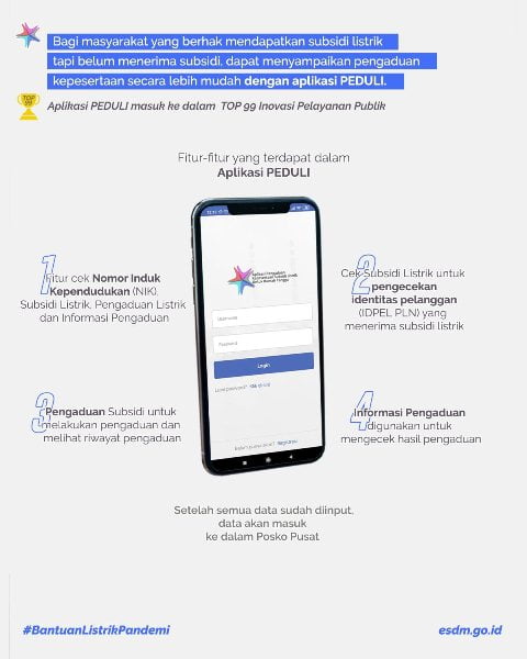 Aplikasi Peduli, Pengaduan Kepesertaan Subsidi Listrik Gratis bagi Masyarakat Tidak Mampu