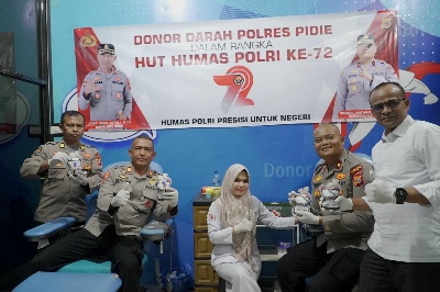 Kapolres Pidie AKBP Imam Asfali, SIK, melalui Kasi Humas AKP Anwar, S.Ag, mengatakan kegiatan donor darah ini dalam rangka memperingati Hari Humas Polri ke-72 yang dilaksanakan di Kantor PMI Kab. Pidie.