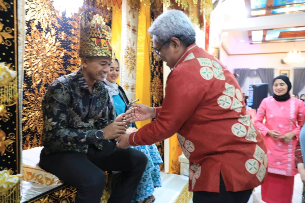 MERDEKABICARA.COM | ACEH UTARA -Pemerintah Kabupaten Aceh Utara menggelar prosesi adat peusijuek (tepung tawar) untuk Komandan Kodim 0103/Aceh Utara yang baru Letkol Kav Makhyar, ST, MM, MHI, Senin malam, 20 November 2023.