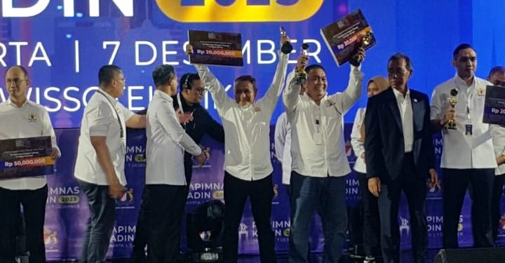 MERDEKABICARA.COM | JAKARTA – Sorak gembira riuh membahana di ruang Ballroom Swissotel, PIK Avenue, Kota Jakarta Utara, pada sesi penutupan Rapat Pimpinan Nasional (RAPIMNAS) Kadin Indonesia tahun 2023, ketika nama Kadin Aceh, Kadin Provinsi Jawa Barat (JABAR) dan Kadin Nusa Tenggara Timur (NTT) diumumkan sebagai pemenang “Kadin Impact Award” tahun 2023. Kadin Aceh, Kadin Jabar dan Kadin NTT mendapat Penghargaan ( AWARD) dengan katagori “pujian”, untuk dedikasinya dalam pencapaian kinerja program dan prestasi konsolidasi organisasi tahun 2023. Ini sebagai penghargaan pertama.