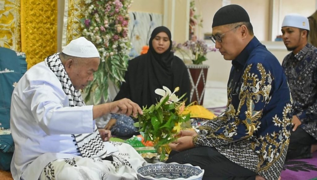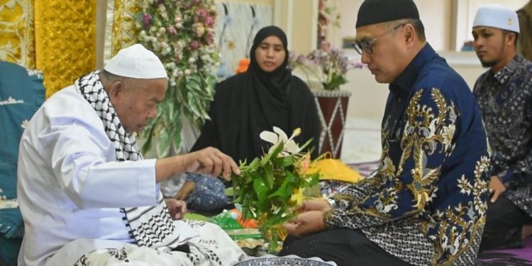 Kedatangan Field Manager Pertamina EP Field Rantau, Despredi Akbar dan Head of Communication Relations & CID Zona 1 Djulianto Tasmat ke dayah turut dipeusijuek oleh Abu Paya Pasi dan turut disaksikan oleh Penjabat (Pj) Bupati Aceh Timur Mahyuddin.