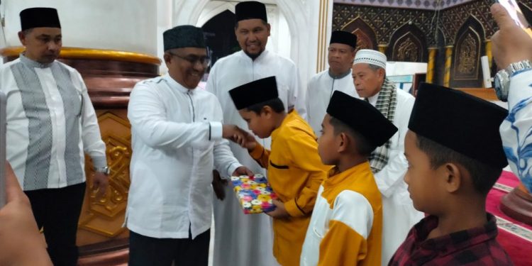 MERDEKABICARA.COM | ACEH UTARA-Penjabat Bupati Aceh Utara Dr Mahyuzar, MSi, menyantuni puluhan anak yatim pada momen memperingati Nuzul Al-Qur’an, malam ke-17 Ramadhan 1445 H, atau bertepatan dengan 27 Maret 2024, bertempat di Masjid Agung Baiturrahim Lhoksukon.