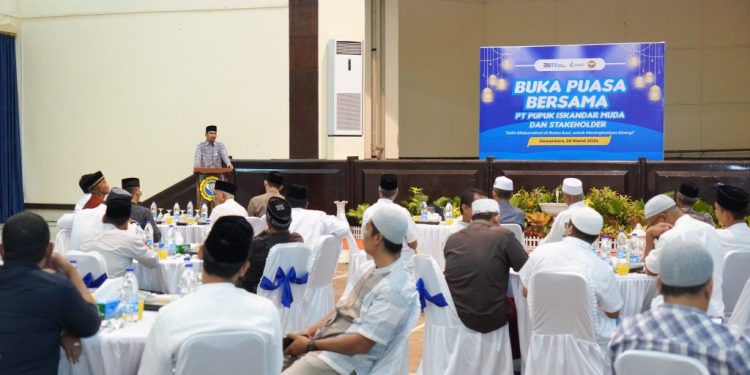MERDEKABICARA.COM | ACEH UTARA -Dalam mempererat silaturahmi dan kemitraan, PT Pupuk Iskandar Muda menggelar buka puasa bersama dengan Stakeholder dan pimpinan organisasi wartawan dari Aceh Utara dan Lhokseumawe, bertempat Gedung pertemuan PT PIM Krueng Geukueh, Kecamatan Dewantara, Aceh Utara, Kamis 28 Maret 2024.