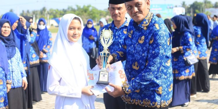 Pada kesempatan itu Pj Sekda Aceh Utara Dayan Albar didampingi oleh Kepala Dinas Pendidikan dan Kebudayaan Jamaluddin, SSos, MPd, menyerahkan penghargaan untuk sejumlah sekolah dan siswa berprestasi.