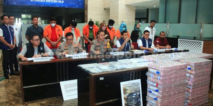 “Pada 25 April 2024, penyidik Direktorat Siber Bareskrim Polri menangkap lima orang tersangka yang terdiri dari 4 laki-laki dan 1 wanita,” ucap Direktur Tindak Pidana Siber (Dirtipidsiber) Bareskrim Polri Brigjen Himawan Bayu Aji dalam konferensi persi di Aula Bareskrim Polri, Selasa (7/5/2024).