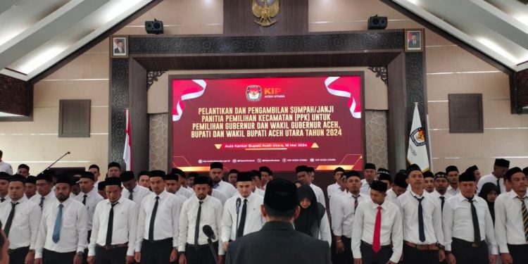 Prosesi pelantikan anggota PPK se-Aceh Utara dilakukan oleh Ketua KIP Aceh Utara Hidayatul Akbar, turut disaksikan oleh para Komisioner KIP lainnya. Juga turut hadir pejabat Forkopimda Aceh Utara, anggota DPRK Aceh Utara, komisoner Panwaslih Aceh Utara, serta sejumlah pejabat terkait lainnya.