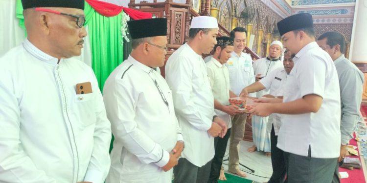Prosesi peusijuek berlangsung di Masjid Agung Baiturrahim Lhoksukon, Rabu, 22 Mei 2024. Kegitan itu turut dihadiri oleh Penjabat Bupati Aceh Utara yang diwakili oleh Plh Sekda Aceh Utara Dr Fauzan, SSTP, MPA, pejabat jajaran Forkopimda Aceh Utara, sejumlah Kepala SKPK, Kepala Kantor Kementerian Agama Kabupaten Aceh Utara Drs H Maiyusri, para Kepala Kantor KUA se-Aceh Utara, para Camat dan pejabat terkait lainnya.