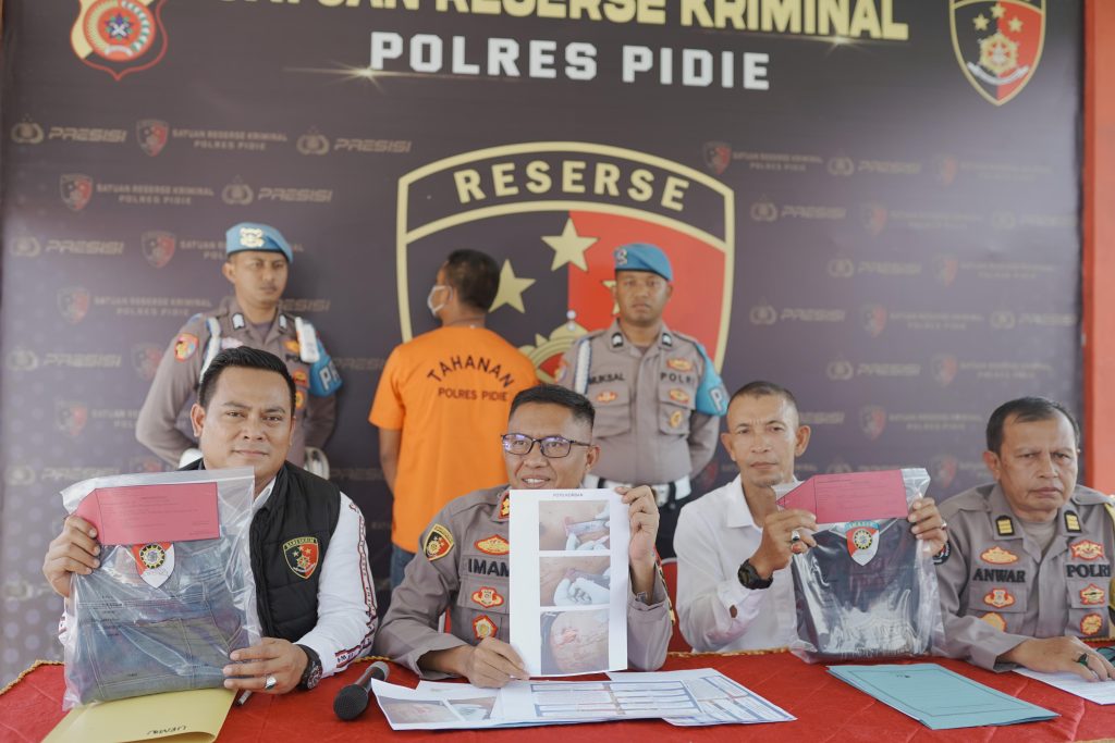 Kapolres Pidie, AKBP Imam Asfali, S.I.K., M.H., dalam konferensi pers dengan sejumlah awak media, menyebutkan bahwa begitu mendapat informasi keberadaan pelaku, Polisi langsung bergerak dan mengamankan pelaku.