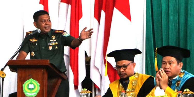 MERDEKABICARA.COM | LANGSA-Komandan Korem (Danrem) 011/Lilawangsa, Kolonel Inf Ali Imran mewakili Pangdam Iskandar Muda Mayjen TNI Niko Fahrizal memberikan orasi ilmiah wisuda sarjana (S1) dan magister (S2) Institut Agama Islam Negeri (IAIN) Langsa, Acara berlangsung di Aula Kampus IAIN Langsa Meurandeh, Kecamatan Langsa Lama, Kota Langsa, Selasa (28/05/2024).