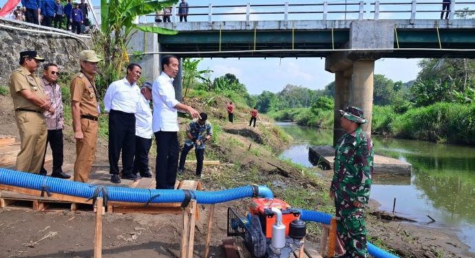 Turut mendampingi Presiden dalam peninjauan tersebut yaitu Menteri Pekerjaan Umum dan Perumahan Rakyat Basuki Hadimuljono, Menteri Pertanian Andi Amran Sulaiman, Pj. Gubernur Jawa Tengah Nana Sudjana. {}