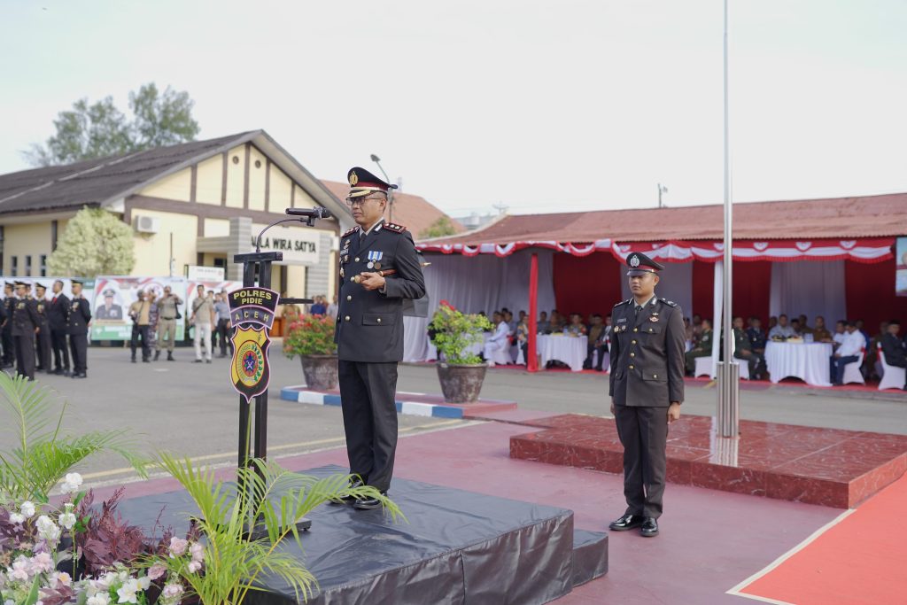 MERDEKABICARA.COM | PIDIE – Kapolres Pidie AKBP Imam Asfali, SIK, MH bertindak selaku Inspektur Upacara Hari Bhayangkara ke 78 Tahun 2024 yang dilaksanakan di Lapangan Apel Mapolres Pidie, senin (1/7/2024) pagi.