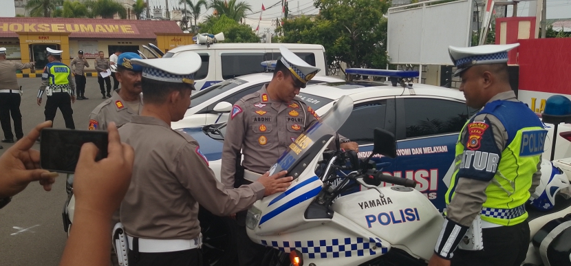 Kepala Satuan (Kasat) Lantas Polres Lhokseumawe langsung melakukan pemeriksaan terhadap kendaraan dinas baik roda empat maupun roda dua.