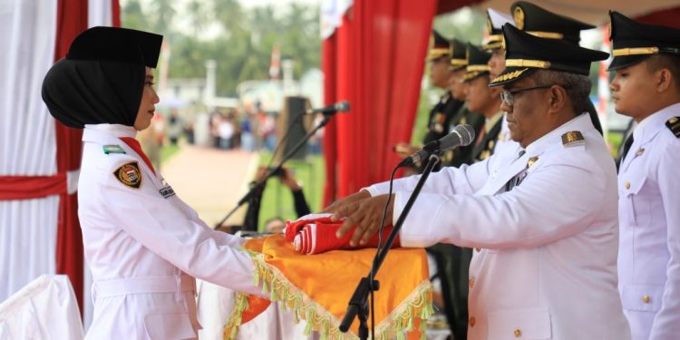 MERDEKABICARA.COM | ACEH UTARA -Penjabat Bupati Aceh Utara Dr Mahyuzar, MSi, bertindak sebagai inspektur upacara (Irup) pada upacara pengibaran bendera merah putih memperingati HUT ke-79 Proklamasi Kemerdekaan RI di Lapangan Landing, Lhoksukon, Sabtu pagi, 17 Agustus 2024.