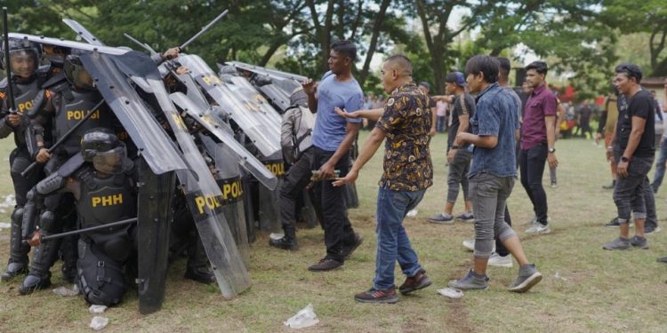 MERDEKABICARA.COM | PIDIE – Personel Polres Pidie dan Personel Pelopor Batalyon A Sat Brimob Polda Aceh melaksanakan latihan bersama dalam kegiatan simulasi sistem pengamanan kota (sispamkota) Ops Mantap Praja Seulawah Tahun 2024 di lapangan Batalyon A Sat Brimob Polda Aceh – Seulawah Kabupaten Aceh Besar, Kamis (22/08/2024)
