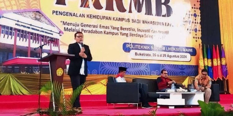 MERDEKABICARA.COM | LHOKSEUMAWE – Politeknik Negeri Lhokseumawe (PNL) kembali menjadi saksi atas terjalinnya sinergi strategis antara dunia akademik dan industri. Pada acara Pengenalan Kehidupan Kampus bagi Mahasiswa Baru (PKKMB) 2024 yang diadakan di Gedung Auditorium Kampus PNL, General Manager PLN UID Aceh, Mundhakir Salman, memberikan kuliah umum yang penuh inspirasi dan visi.
