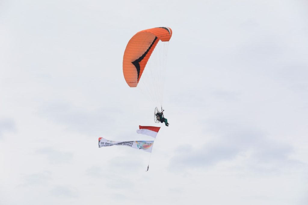 MERDEKABICARA COM | ACEH UTARA -Penjabat (Pj) Bupati Aceh Utara Dr Mahyuzar resmi membuka pekan olahraga nasional (PON) XXI Aceh-Sumut 2024, Cabang Olahraga Aerosport Paramotor di Veneu Bandara Malikussaleh, Aceh Utara, Rabu (28/8/).