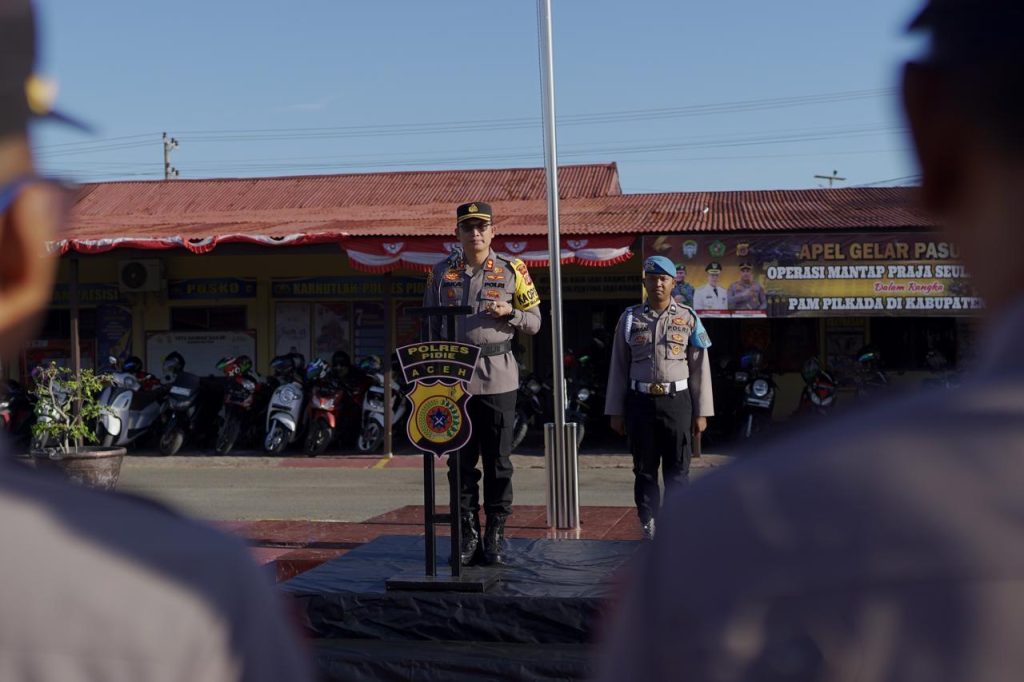 Dalam Apel tersebut, Kapolres Pidie AKBP Jaka Mulyana, SIK, MIK menekankan pentingnya menjaga keamanan dan kenyamanan semua pihak yang terlibat, termasuk atlet, official, pengunjung, dan masyarakat.