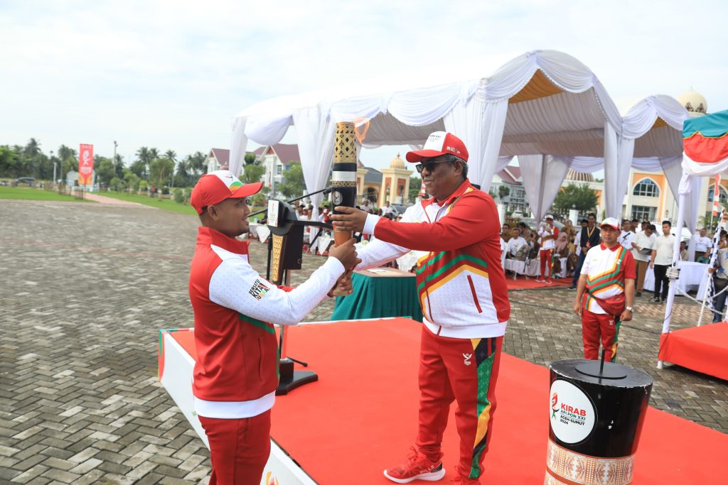 MERDEKABICARA.COM | ACEH UTARA -Penjabat Bupati Aceh Utara Dr Mahyuzar, MSi, memimpin upacara penyambutan kirab api Pekan Olahraga Nasional (PON) XXI Tahun 2024 Aceh – Sumut, berlangsung di lapangan upacara Landing Kecamatan Lhoksukon, Selasa, 3 September 2024.