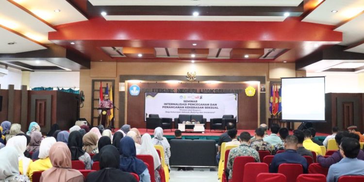 MERDEKABICARA.COM | LHOKSEUMAWE – Politeknik Negeri Lhokseumawe (PNL) menggelar seminar internalisasi pencegahan dan penanganan kekerasan seksual pada Selasa, 15 Oktober 2024, di Aula Lantai III Gedung Utama PNL. Acara ini dibuka secara resmi oleh Direktur PNL, Ir. Rizal Syahyadi, ST. M.Eng.Sc. IPM. ASEAN.Eng. APEC.Eng, yang dalam sambutannya menyampaikan pesan kuat mengenai pentingnya tanggung jawab moral dan kelembagaan dalam menciptakan lingkungan kampus yang bebas dari kekerasan seksual.