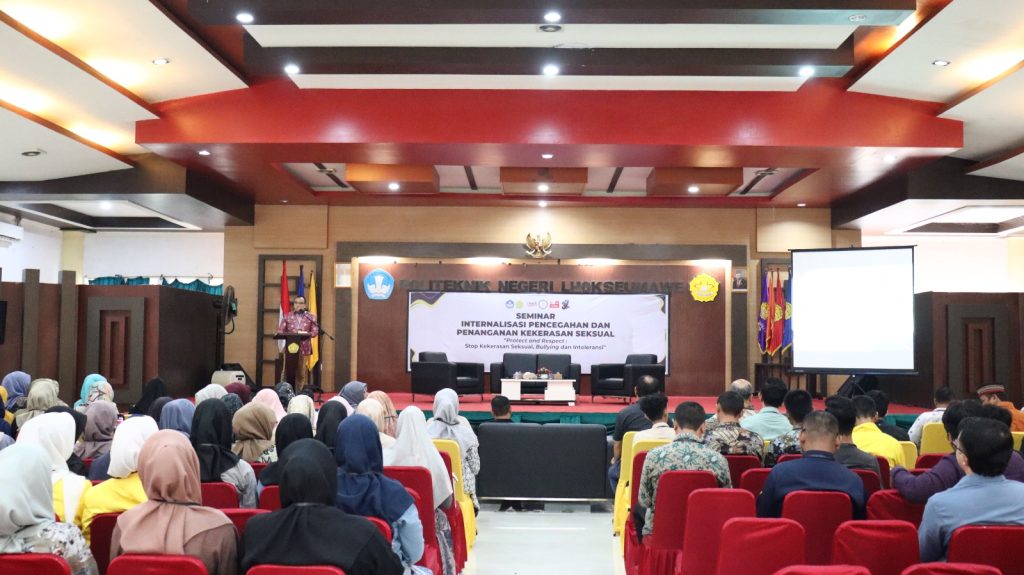 MERDEKABICARA.COM | LHOKSEUMAWE – Politeknik Negeri Lhokseumawe (PNL) menggelar seminar internalisasi pencegahan dan penanganan kekerasan seksual pada Selasa, 15 Oktober 2024, di Aula Lantai III Gedung Utama PNL. Acara ini dibuka secara resmi oleh Direktur PNL, Ir. Rizal Syahyadi, ST. M.Eng.Sc. IPM. ASEAN.Eng. APEC.Eng, yang dalam sambutannya menyampaikan pesan kuat mengenai pentingnya tanggung jawab moral dan kelembagaan dalam menciptakan lingkungan kampus yang bebas dari kekerasan seksual.