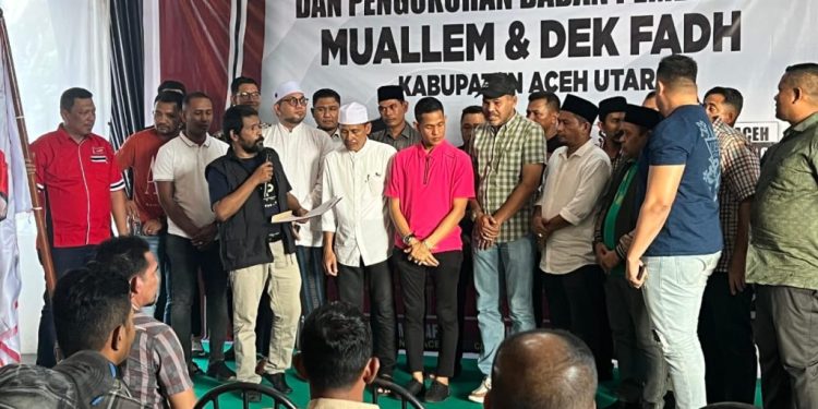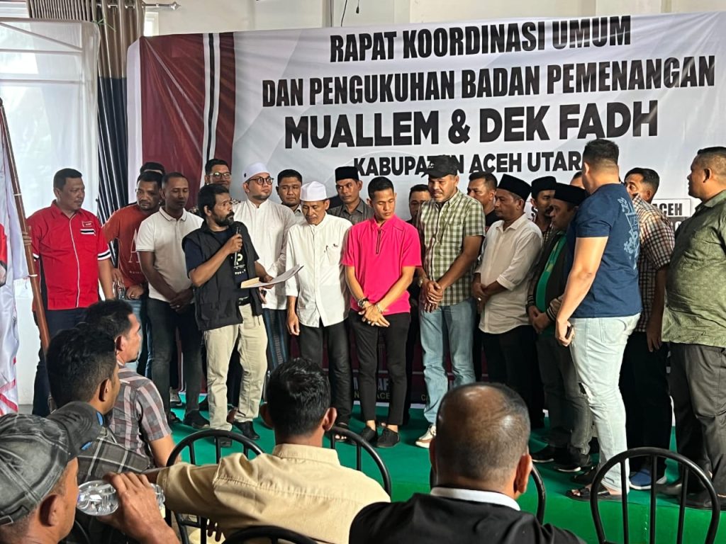 Tim Pemenangan Pusat Pasangan Calon Gubernur Aceh Nomor Urut 2 H Muzakir Manaf yang berpasang dengan H. Fadhlullah, SE (Mualem – Dek Fad) yang diwakili oleh Adi Laweung, hari ini Minggu, 20 Oktober 2024, mengukuhkan Tim Pemenangan Kabupaten Aceh Utara.