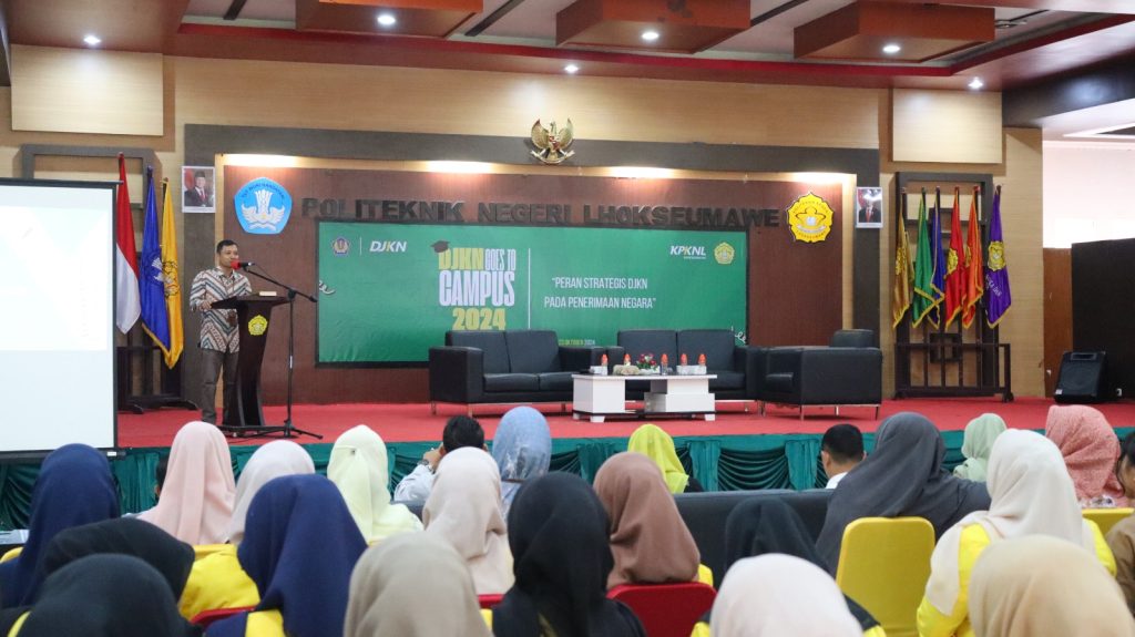 MERDEKABICARA.COM | LHOKSEUMAWE -, 23 Oktober 2024 — Politeknik Negeri Lhokseumawe (PNL) menjadi tuan rumah kegiatan DJKN Goes to Campus yang diselenggarakan oleh Kantor Pelayanan Kekayaan Negara dan Lelang (KPKNL) Lhokseumawe, dengan tema Peran Strategis DJKN pada Penerimaan Negara. Kegiatan yang berlangsung di Aula Lantai III Gedung Utama PNL ini menghadirkan Kepala KPKNL Lhokseumawe, Novrizal sebagai keynote speaker, Rabu 23 Oktober 2024.