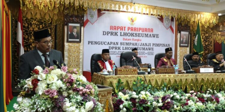 MERDEKABICARA.COM | LHOKSEUMAWE – Penjabat (Pj) Wali Kota Lhokseumawe, A. Hanan, SP, MM hadiri Rapat Paripurna dalam rangka Pelantikan pimpinan baru DPRK masa jabatan tahun 2024-2029, Kamis (31/10/2024).