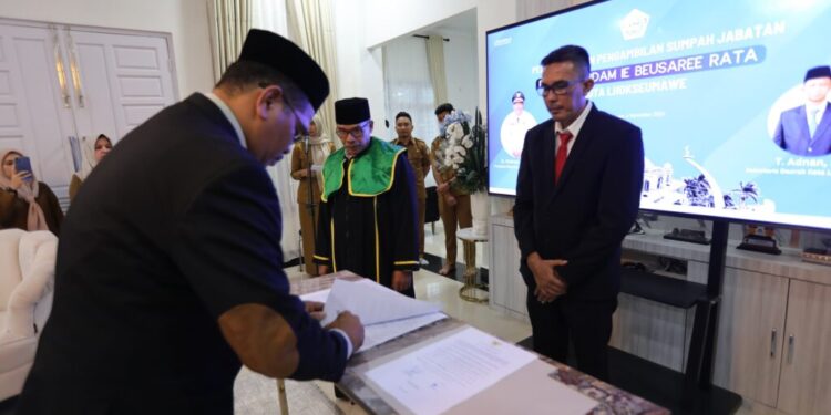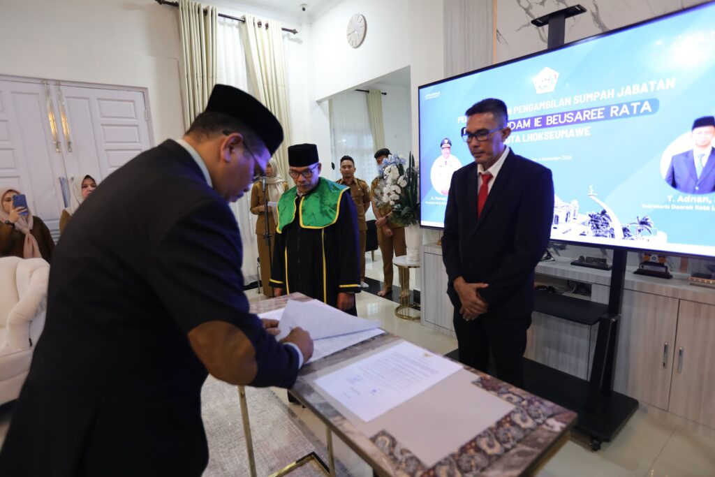 MERDEKABICARA.COM | LHOKSEUMAWE – Penjabat (Pj) Wali Kota Lhokseumawe, A. Hanan, SP, MM, secara resmi melantik Saifuddin, ST sebagai Direktur Perusahaan Daerah Air Minum (PDAM) Ie Beusaree Periode 2024-2028 di Guest House Wali Kota Lhokseumawe, Senin sore (04/11).