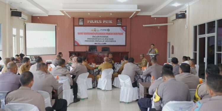 MERDEKABICARA.COM | PIDIE – Polres Pidie Polda Aceh menggelar Rapat Koordinasi (Rakor) bersama sejumlah dinas dan stakeholder terkait dalam rangka menindaklanjuti instruksi Presiden RI Prabowo Subianto terkait ketahanan pangan. Selasa (5/11/2024)