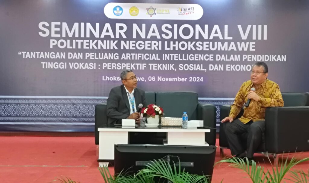 MERDEKABICARA.COM | LHOKSEUMAWE – Politeknik Negeri Lhokseumawe (PNL) sukses menggelar Seminar Nasional VIII bertema “Tantangan dan Peluang Artificial Intelligence dalam Pendidikan Tinggi Vokasi: Perspektif Teknik, Sosial, dan Ekonomi” pada Rabu, 6 November 2024, di Aula Lantai III Gedung Utama PNL. Acara ini dihadiri oleh 154 peserta yang terdiri dari akademisi, mahasiswa, dan perwakilan dari berbagai institusi eksternal, menandakan antusiasme yang tinggi terhadap perkembangan teknologi dan dampaknya dalam dunia pendidikan vokasi.