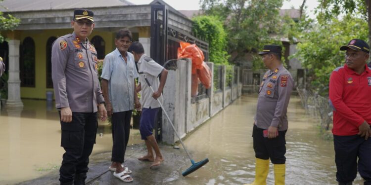 Kapolres Pidie AKBP Jaka Mulyana, SIK, MIK bersama Pj Bupati Pidie Drs Samsul Azhar, sabtu (23/11/2024) pagi, melakukan peninjauan dan penyaluran bantuan terhadap masyarakat Gampong yang terkena dampak bencana banjir di Kecamatan Mutiara Timur dan Mutiara Barat Kabupaten Pidie