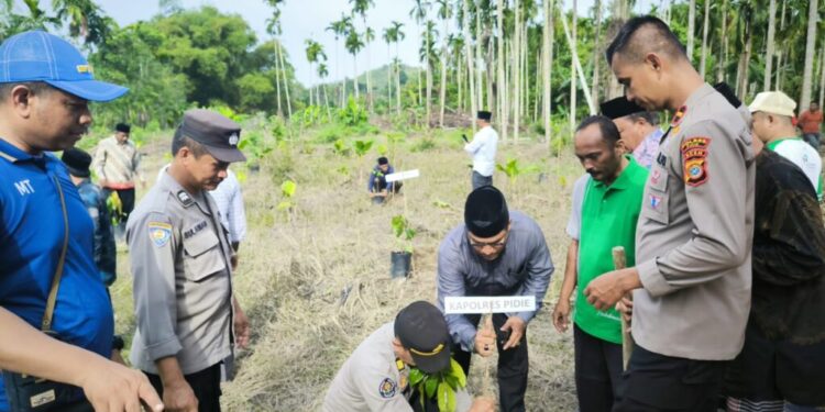 MERDEKABICARA.COM | PIDIE -Kapolres Pidie AKBP Jaka Mulyana, SIK, MIK yang diwakili Kasi Humas AKP Anwar, S.Ag, hadir dalam acara Launching Gerakan Penanaman 2.500 Pohon Kakao yang diselenggarakan dalam rangka Hari Amal Bakti (HAB) ke-79 Kementerian Agama Republik Indonesia. yang berlangsung di kebun wakaf di Gampong Kupula Tanjung Padang Tiji Kabupaten Pidie, Sabtu (14/12/2024).
