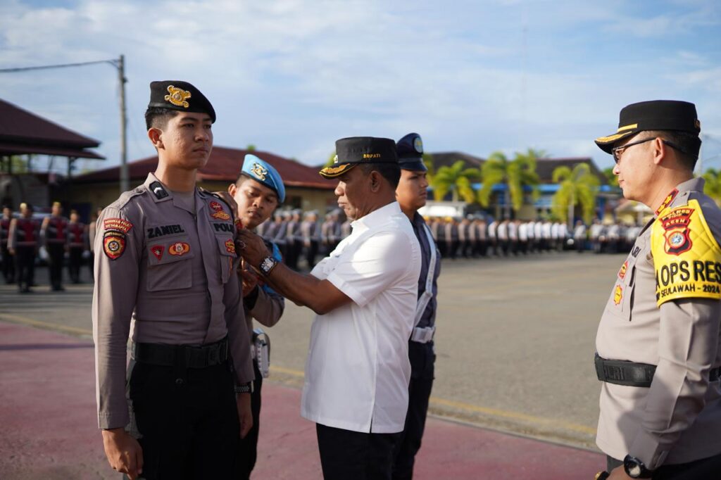 Pj. Bupati Pidie Drs. Samsul Azhar yang didampingi Kapolres Pidie, ikut melakukan penyematan pita tanda operasi sebagai simbol dimulainya Operasi Lilin Seulawah 2024 kepada perwakilan personel TNI/Polri dan Dinas Perhubungan Kabupaten Pidie.