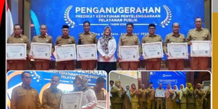MERDEKABICARA.COM | ACEH UTARA – Penjabat Bupati Aceh Utara diwakili oleh Kepala Dinas Kesehatan Amir Syarifudin, SKM, MM, menerima penghargaan Kepatuhan Pelayanan Publik tahun 2024 dari Ombudsman RI dengan nilai Tinggi, yakni 87,71.