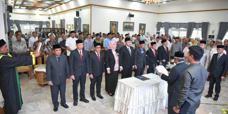 MERDEKABICARA.COM | ACEH UTARA -Penjabat Bupati Aceh Utara Dr Mahyuzar, MSi, melantik dan mengambil sumpah delapan pejabat pada Jabatan Pimpinan Tinggi (JPT) Pratama atau setara Eselon II yang menduduki jabatan Kepala Dinas, Badan, dan Asisten.