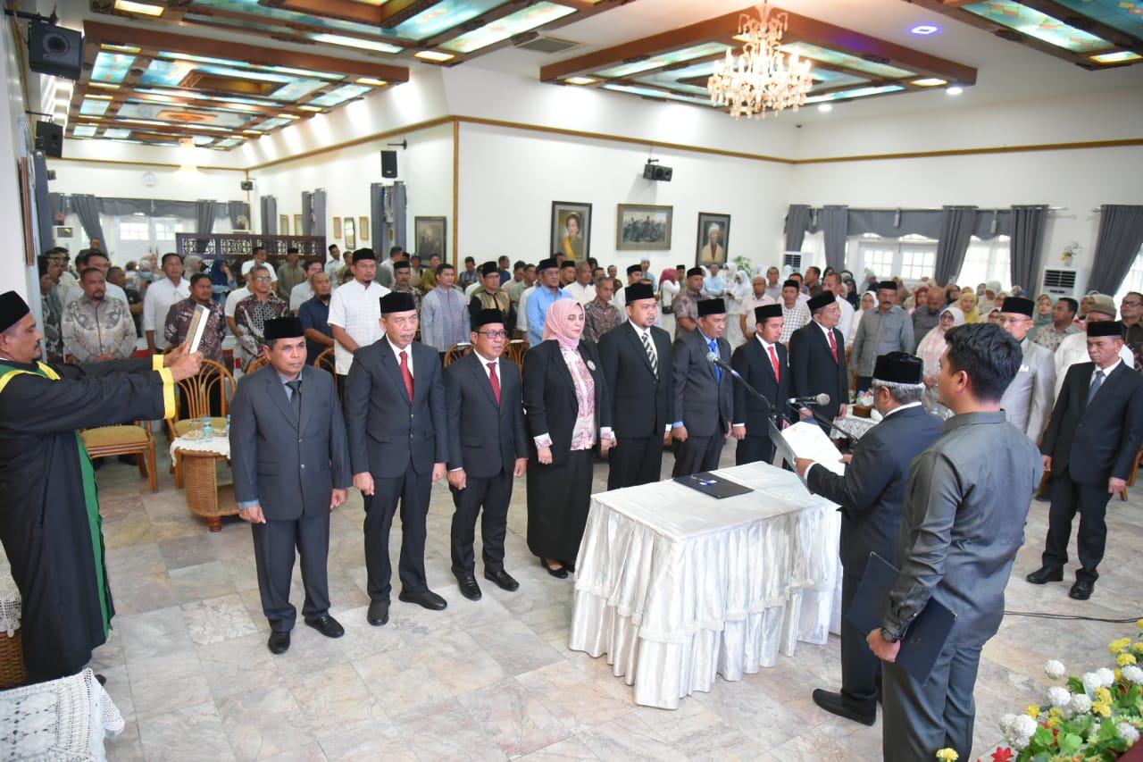 MERDEKABICARA.COM | ACEH UTARA -Penjabat Bupati Aceh Utara Dr Mahyuzar, MSi, melantik dan mengambil sumpah delapan pejabat pada Jabatan Pimpinan Tinggi (JPT) Pratama atau setara Eselon II yang menduduki jabatan Kepala Dinas, Badan, dan Asisten.