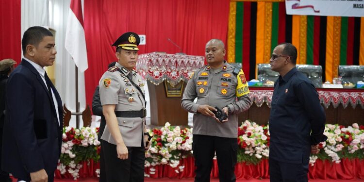MERDEKABICARA.COM | PIDIE – Ratusan Personel Polres Pidie bersama Personel TNI dan stakeholder terkait lainnya berhasil mengamankan Pengambilan Sumpah dan Pelantikan Bupati dan Wakil Bupati Pidie periode 2025-2030 yang berlangsung di Gedung Dewan Perwakilan Rakyat Kabupaten Pidie, Selasa (18/02/2025)