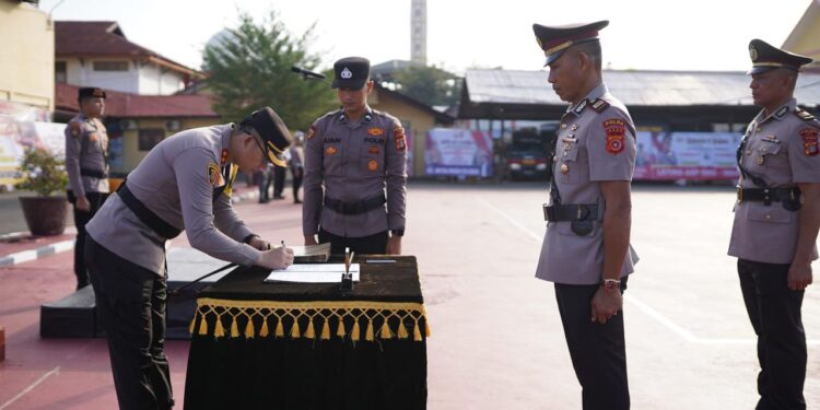 MERDEKABICARA.COM | PIDIE – Kapolres Pidie AKBP Jaka Mulyana, SIK, MIK memimpin upacara serah terima jabatan (Sertijab) Kabagops, Kasipropram dan Kapolsek Jajaran, Acara serah terima jabatan dilaksanakan di lapangan apel Mapolres Pidie, kamis (20/02/2025).