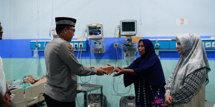Saat menyapa pasien, Kapolres Pidie juga memotivasi para pasien dan keluarganya sebagai bentuk kepedulian sosial Polres Pidie di bulan suci Ramadhan 1446 H.