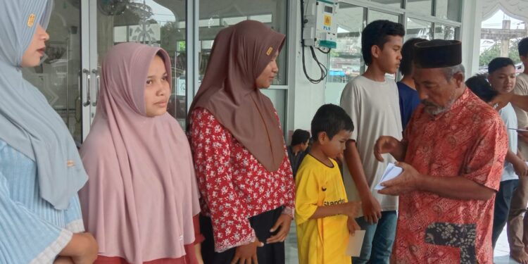 MERDEKABICARA.COM | Aceh Utara — Forum Komunikasi Masyarakat Geureudong Pase ( FORKOMPAS) kabupaten Aceh Utara, menyerahkan bantuan lebaran kepada sekitar 120 orang  anak Yatim-Piatu yang ada di kecamaatan tersebut.  Penyerahan bantuan dilangsungkan di mesjid Al-Ashar , Mbang, Senin, 24 Maret 2024.