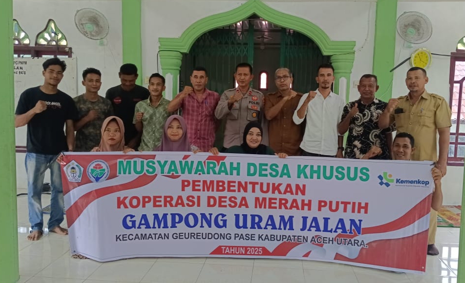 Merdekabicara.com | Aceh Utara, – Pemerintah Gampong Uram Jalan, kecamatan Geureudong Pase , Kabupaten Aceh Utara, berkomitmen untuk mendukung setiap program yang sudah diluncurkan oleh presiden ke-8 RI Prabowo Subianto. Salah satunya program tersebut adalah berdirinya Koperasi Merah Putih di setiap desa di seluruh Indonesia.