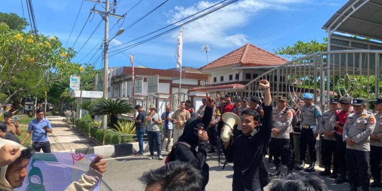 MERDEKABICARA.COM | BANDA ACEH – Ratusan mahasiswa Aceh yang tergabung dalam Aliansi Mahasiswa Menggugat (AMM) menggelar aksi unjuk rasa di Kantor Kejaksaan Tinggi Aceh, Rabu, (11/06/25).